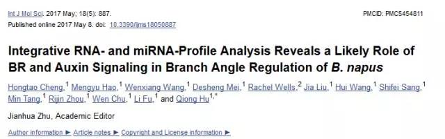 題目:mRNA-miRNA整合分析揭示BR、auxin信號通路參與調(diào)控油菜分蘗(分枝)角度