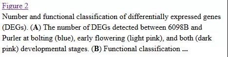 取樣方法:兩個品系的均取抽薹時期與花發(fā)育早期兩個時間點的分枝發(fā)生部位。每個品系每個時期1個樣本(每個個體至少取5個分枝發(fā)生部位,最多6個個體混樣樣本),總共4個樣本,每個樣本分別進行mRNA測序與microRNA測序