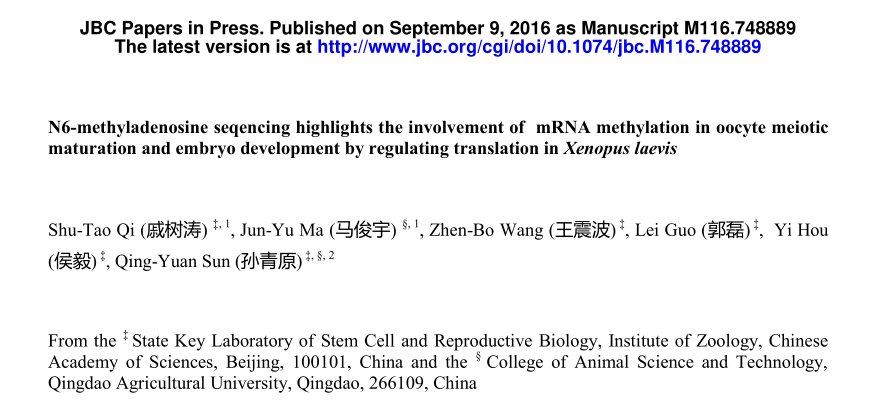 05月03 【成功案例】百邁客云 BLAST小工具 助力 孫青原老師 發(fā)表《N6-甲基腺苷測(cè)序揭示了mRNA甲基化通過(guò)調(diào)節(jié)非洲爪蟾的翻譯水平對(duì)卵母細(xì)胞減數(shù)分裂成熟和胚胎發(fā)育的影響》